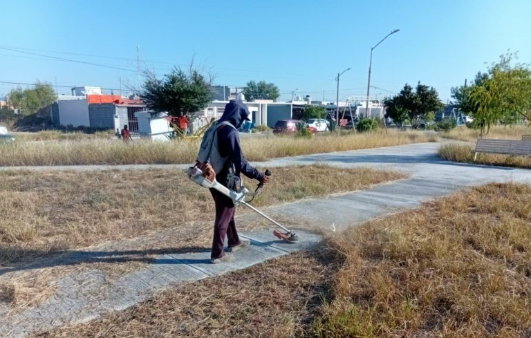 Por instrucciones del Alcalde Carlos Peña Ortiz, el Gobierno Municipal de Reynosa, a través de Servicios Públicos, realizó este lunes 3 de noviembre diversas acciones de limpieza y mantenimiento en varios puntos de la ciudad. Estas labores incluyeron el saneamiento y conservación de la plaza de la colonia Valle de Bravo, trabajos de limpieza y corte de maleza en el parque Antonio Bermúdez, así como la atención de cordones y banquetas alrededor de la Secundaria 13 en Balcones de Alcalá. También se llevaron a cabo acciones de corte de maleza, limpieza general y poda de árboles en la plaza pública de Integración Familiar, además de trabajos de mantenimiento en la calle Viñedo del sector La Macarena de Campestre Bugambilias y en las calles Puerta de Limón y Puerta de Cedro de la colonia Puerta Grande.