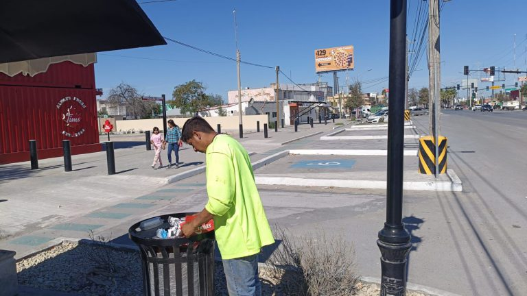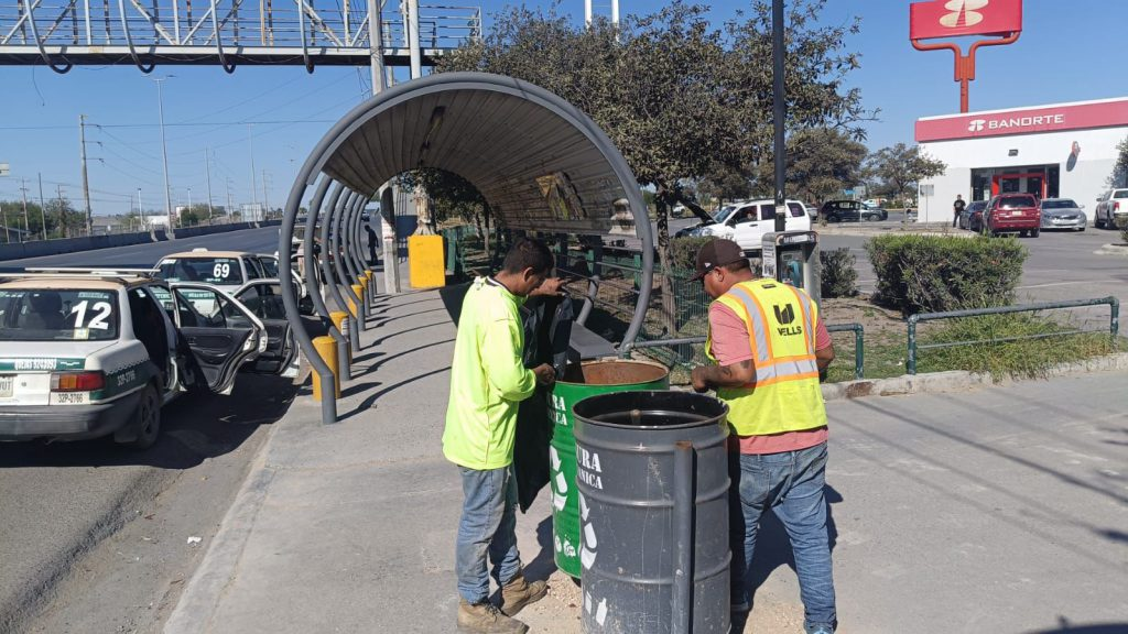 Como parte de estas labores, cuadrillas municipales realizaron un recorrido para el levantamiento de basura en diversos parabuses ubicados en zonas de alta afluencia, como los puentes Panasonic y Húngaro, así como en el Periférico, bulevar Hidalgo y calle Juárez, donde además se verificó el estado general de estos espacios públicos.
