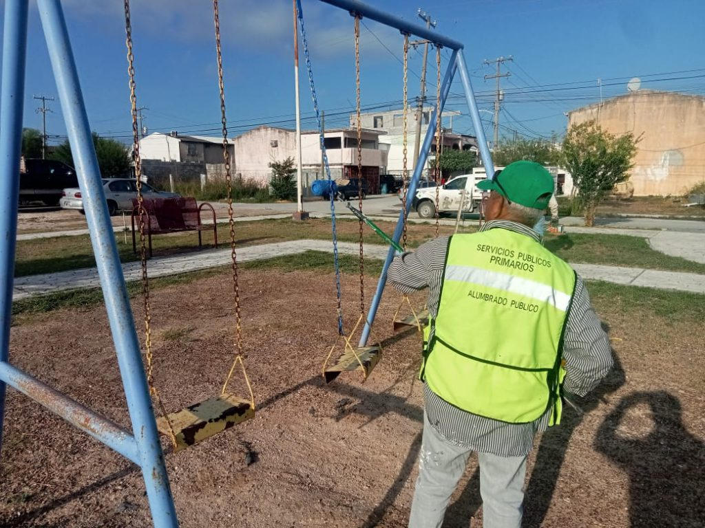 Asimismo, en la colonia Lomas del Villar se trabaja en la rehabilitación de la plaza pública mediante la aplicación de pintura anticorrosiva en los juegos infantiles, fortaleciendo la infraestructura comunitaria y garantizando áreas más seguras y atractivas para la convivencia y recreación de niñas, niños y familias.