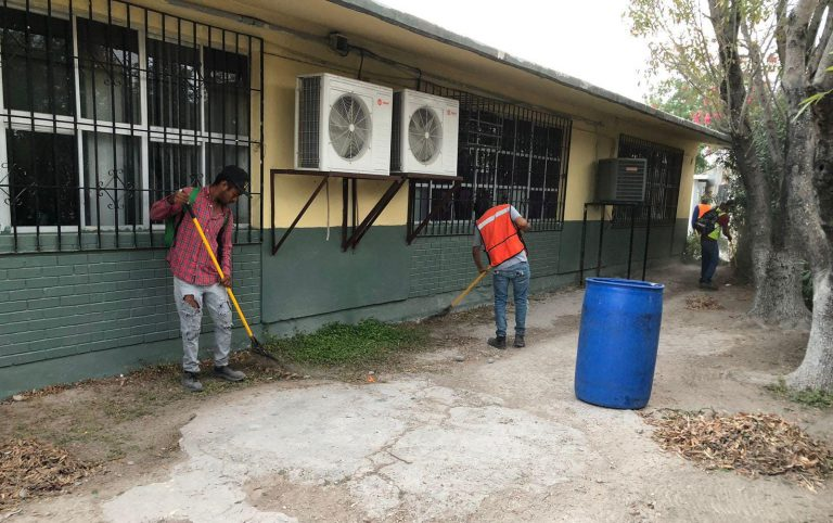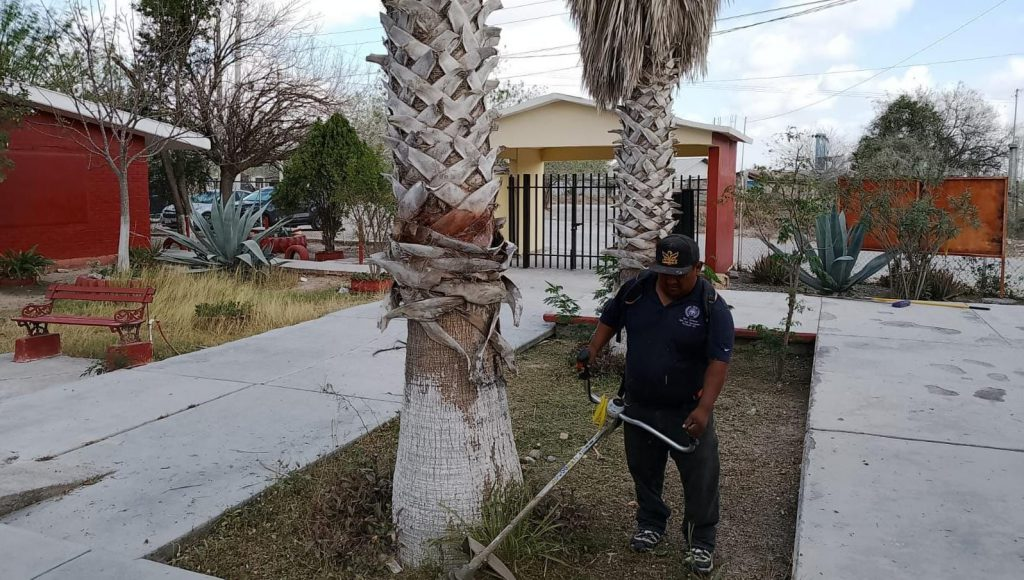Los trabajadores municipales también efectuaron limpieza en la plaza Benito Juárez de la colonia Bella Vista, además del retiro de basura y ramas en la escuela primaria General Lázaro Cárdenas de la colonia Narciso Mendoza. A estas actividades se sumaron trabajos de limpieza en la telesecundaria Lucio Blanco del ejido El Guerreño, así como en el bulevar 18 de Marzo.