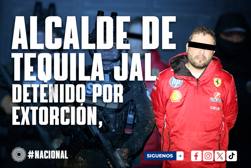El presidente municipal de Tequila, Jalisco, Diego Rivera Navarro, fue detenido el pasado 5 de febrero durante un operativo federal en el que es señalado por su presunta participación en delitos de extorsión, corrupción y posibles vínculos con el crimen organizado, informaron autoridades federales.