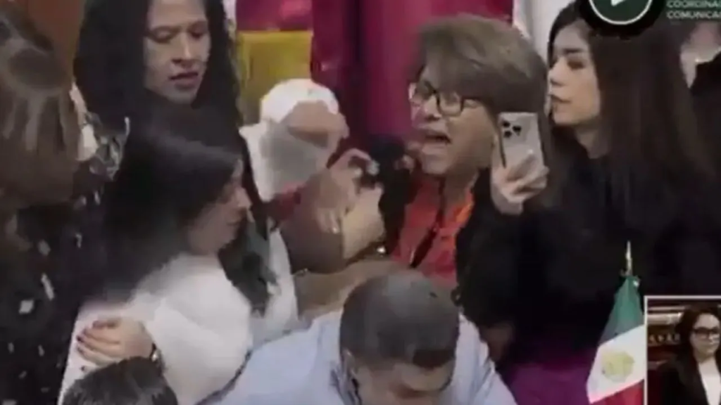 Durante la sesión, el debate escaló rápidamente hasta derivar en agresiones físicas entre legisladoras, situación que quedó evidenciada por los gritos y llamados de auxilio registrados en el pleno, donde se escuchan frases como “¡Se están golpeando!”, “No es necesaria la violencia” y reclamos directos señalando que hubo golpes desde la parte posterior del recinto, incluso cerca de una de las puertas de acceso