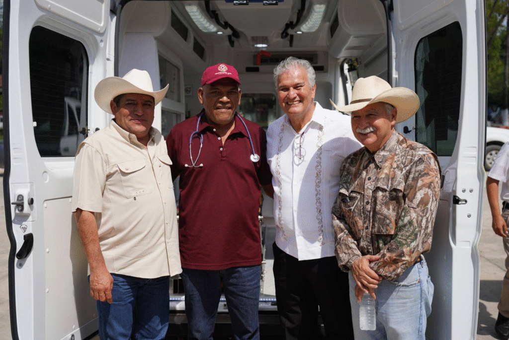 Hidalgo, Tamaulipas. — En cumplimiento a las instrucciones del gobernador del estado, Dr. Américo Villarreal Anaya, de fortalecer la atención médica en todas las regiones de Tamaulipas, el Secretario de Salud, Dr. Vicente Joel Hernández Navarro, hizo entrega de una ambulancia al presidente municipal de Hidalgo, Praxedis Guajardo Reyna.