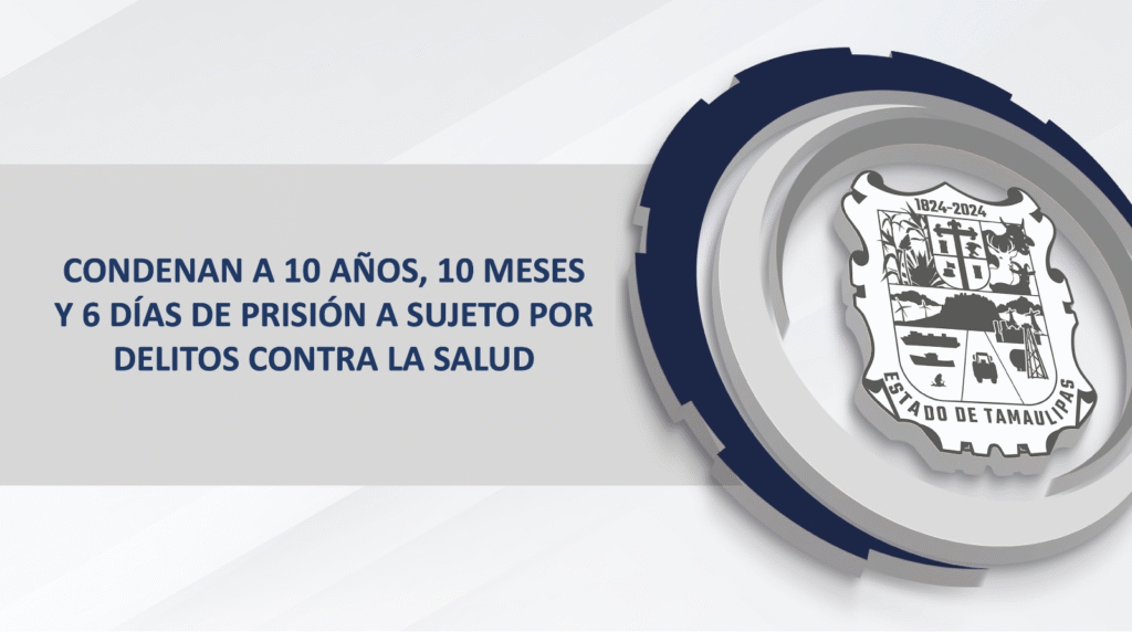 Reynosa, Tamaulipas. — La Fiscalía General de Justicia del Estado de Tamaulipas informó que un Juez de Control dictó una sentencia condenatoria de 10 años, 10 meses y 6 días de prisión en contra de Ignacio “P”, al acreditarse su responsabilidad en los delitos de narcomenudeo en la modalidad de posesión simple y robo de vehículo con violencia.